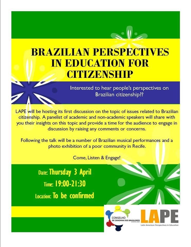 LITERATURE | PHOTOGRAPHY | MUSIC | 6.30pm | Brazilian perspectives in Education for citizenship: music, poetry and Photography | @ Institute of Education (room to be confirmed) ( 20 Bedford Way, London WC1H 0AL) | Russell Square | +i: | FREE