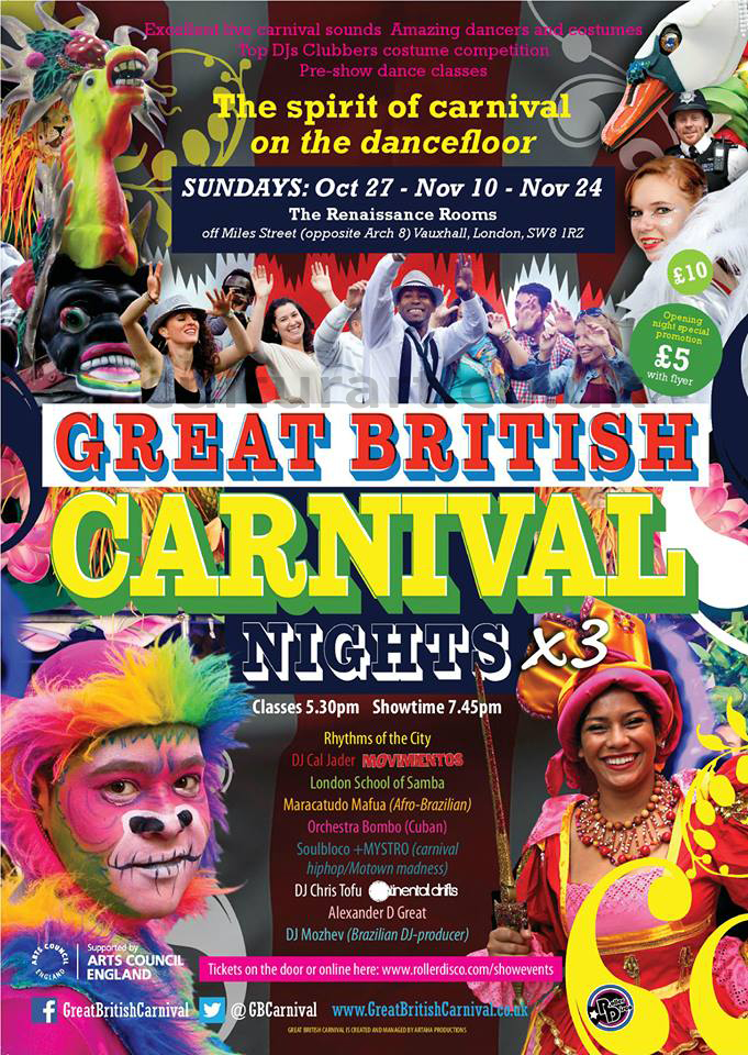CARNIVAL 5.30pm Great British Carnival 2013 (classes and shows) @ Renaissance Room (off Miles St., opposite Arch 8) Vauxhall, SW8 1RZ) £10 or £5 with a flyer